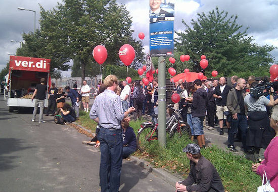 Die Welt schaute auf Berlin und sah die Spitzen des Staates, die der Spaltung Deutschlands, der Errichtung der Berliner Mauer und der zahlreichen Opfer gedachten. Ausgerechnet den 50. Jahrestag des Mauerbaus hatten sich eine Handvoll Rechtsradikale ausgesucht, um mit einer "Gedenkminute" auf der Bösebrücke, die den Wedding mit dem Prenzlauer Berg verbindet, zu provozieren. Die Pankower SPD auf der einen und die SPD aus Mitte auf der anderen Seite der Brücke stellten sich den Neonazis erneut aufrecht entgegen. Zahlreiche Genossinnen und Genossen, Mitglieder des Kreisvorstandes, der BVV- und Abgeordnetenhausfraktion, des Bezirksamtes sowie fast alle Kandidatinnen und Kandidaten für die Wahlen am 18. September waren unter den Protestierenden.